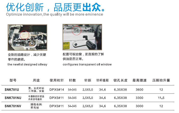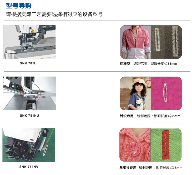Applied for button-holing on ordinary or knitted material with light or heavy weight.